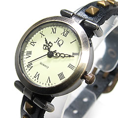 【T2N アンティーク調・アンティーク風 レトロ 腕時計】 T2N-W038-BK スタッズレザーベルト ブラック レディースウォッチ 【あす楽対応】