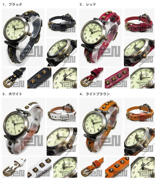 【T2N アンティーク調・アンティーク風 レトロ 腕時計】 T2N-W038-LBR スタッズレザーベルト ライトブラウン レディースウォッチ 【あす楽対応】