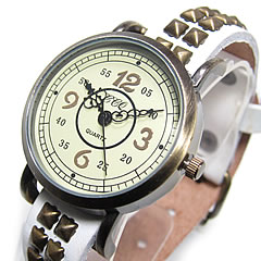 【T2N アンティーク調・アンティーク風 レトロ 腕時計】 T2N-W039-WH ラップブレス スタッズレザーベルト ホワイト レディースウォッチ 【あす楽対応】