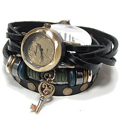【T2N アンティーク調・アンティーク風 レトロ 腕時計】 T2N-WE2014-BK ラップブレス スタッズレザーベルト キーチャーム ブラック レディースウォッチ 【あす楽対応】