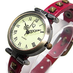 【T2N アンティーク調・アンティーク風 レトロ 腕時計】 T2N-W038-RD スタッズレザーベルト レッド レディースウォッチ 【あす楽対応】